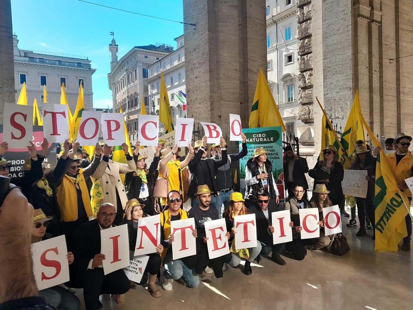 “flash mob dei giovani agricoltori della coldiretti che da tutta italia sono scesi in piazza davanti a palazzo chigi per dire no al cibo sintetico, con un presidio lampo organizzato in occasione del consiglio dei ministri sul disegno di legge che vieta il commercio e la produzione in italia di carne e altri alimenti ottenuti in laboratorio, proposto dal ministro dell’agricoltura e della sovranita’ alimentare francesco lollobrigida e dalla presidente del consiglio giorgia MELONI per i quali e’ stato preparato un cesto di tipicita’ 100% made in italy. ‘no al cibo sintetico’, ‘contro il cibo in provetta e’ meglio una vera porchetta’, ‘difendiamo la dieta mediterranea’, ‘no agli oligarchi del cibo artificiale’, sono solo alcuni degli slogan che si leggono su striscioni e cartelli esposti dai manifestanti sul lato della galleria alberto sordi, guidati dalla delegata nazionale veronica BARBATI, insieme al segretario generale vincenzo GESMUNDO e al presidente nazionale ettore PRANDINI”, informa un comunicato della coldiretti. “l’italia, che e’ leader europeo nella qualita’ e nella sicurezza a tavola, ha il dovere di fare da apripista nelle politiche alimentari a tutela dei cittadini e delle imprese. e’ necessario difendere i primati dell’agricoltura piu’ green d’europa. proprio i giovani agricoltori, che hanno scelto di costruire il proprio futuro nelle campagne, sarebbero le prime vittime della diffusione del cibo sintetico, che punta alla sostituzione degli alimenti naturali prodotti nelle campagne con quelli fatti in laboratorio”, ha affermato PRANDINI. “la legge contro carne, latte, formaggi, pesce e mangimi in provetta da parte del governo e’ stata sostenuta da una grande mobilitazione popolare che in tutto il paese ha visto la raccolta di mezzo milione di firme da parte anche dei giovani e delle donne della coldiretti insieme a campagna amica, world farmers markets coalition, world farmers organization, farm europe e filiera italia. tra i primi a firmare la presidente MELONI nella sua prima uscita pubblica dopo le elezioni ed il ministro LOLLOBRIGIDA ma anche altri ministri e sottosegretari, parlamentari nazionali ed europei, governatori, sindaci, personalita’ della cultura dello sport e dello spettacolo, rappresentanti istituzionali di regioni e province, imprenditori e numerosi vescovi”, sottolinea coldiretti. “lo schema di disegno di legge del governo contro il cibo sintetico risponde alle richieste di mezzo milione di italiani che hanno firmato la petizione promossa da coldiretti per salvare il made in italy a tavola dall’attacco delle multinazionali”, ha dichiarato PRANDINI. “dopo l’autorizzazione per il consumo umano concessa dall’autorita’ alimentare americana fda ai filetti di ‘pollo’ creati in laboratorio dalla upside foods e a quelli della good meat, il rischio e’ una diffusione anche nell’unione europea dove gia’ quest’anno potrebbero essere introdotte le prime richieste di autorizzazione all’immissione in commercio che coinvolgono efsa e commissione ue. dopo la carne la sperimentazione si e’ estesa al pesce ed al latte mettendo a rischio la naturalita’ degli alimenti piu’ presenti nella dieta”, spiega ancora coldiretti. “ringraziamo il governo per aver accolto il nostro appello a fermare una pericolosa deriva che mette a rischio il futuro della cultura alimentare nazionale, delle campagne e dei pascoli e dell’intera filiera del cibo made in italy e la stessa democrazia economica. le bugie sul cibo in provetta confermano che c’e’ una precisa strategia delle multinazionali che con abili operazioni di marketing puntano a modificare stili alimentari naturali fondati sulla qualita’ e la tradizione. la verita’ e’ che non si tratta di carne ma di un prodotto sintetico e ingegnerizzato, che non salva l’ambiente perche’ consuma piu’ acqua ed energia di molti allevamenti tradizionali non aiuta la salute perche’ non c’e’ garanzia che i prodotti chimici usati siano sicuri per il consumo alimentare e, inoltre, non e’ accessibile a tutti poiche’ e’ nelle mani di grandi multinazionali”, ha aggiunto PRANDINI.