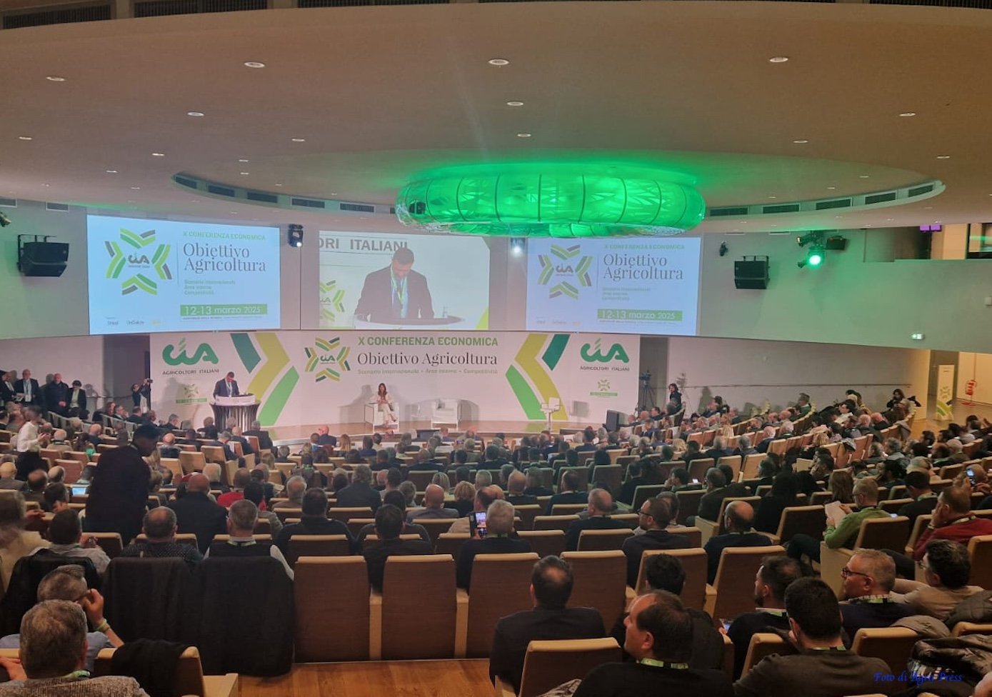 si tiene oggi e domani all’auditorium della tecnica a roma la X conferenza economica della cia-agricoltori italiani. questa mattina, dopo l’intervento di apertura del presidente cristiano FINI, sono intervenuti con video messaggi il vicepresidente esecutivo della commissione europea raffaele FITTO, la ministra del lavoro elvira CALDERONE ed il presidente ice matteo ZOPPAS. la mattinata si e’ conclusa con l’intervento del ministro dell’agricoltura francesco LOLLOBRIGIDA. il segretario di stato vaticano pietro PAROLIN ha inviato un messaggio https://bit.ly/3R04HK6. a seguire gli interventi nel parterre: livio PROIETTI, presidente ismea; luigi e vincenzo CREMONINI dell’omonimo gruppo; francesco VINCENZI, presidente anbi; tommaso BATTISTA, presidente copagri; renzo PIRACCINI, presidente macfrut; maria grazia MAMMUCCINI, presidente federbio; antonello CAPUA, presidente agci-agraolaimentare; clara FOSSATO, segretaria generale uniceb; françois TOMEI, direttore assocarni; michele DISTEFANO, direttore foragri; vito SCIANCALEPORE, direttore fedagripesca; stefano VACCARI (pd), membro comagri camera; ornella BETTINI, ufficio agricoltura ambasciata stati uniti; ezio CASTIGLIONE.